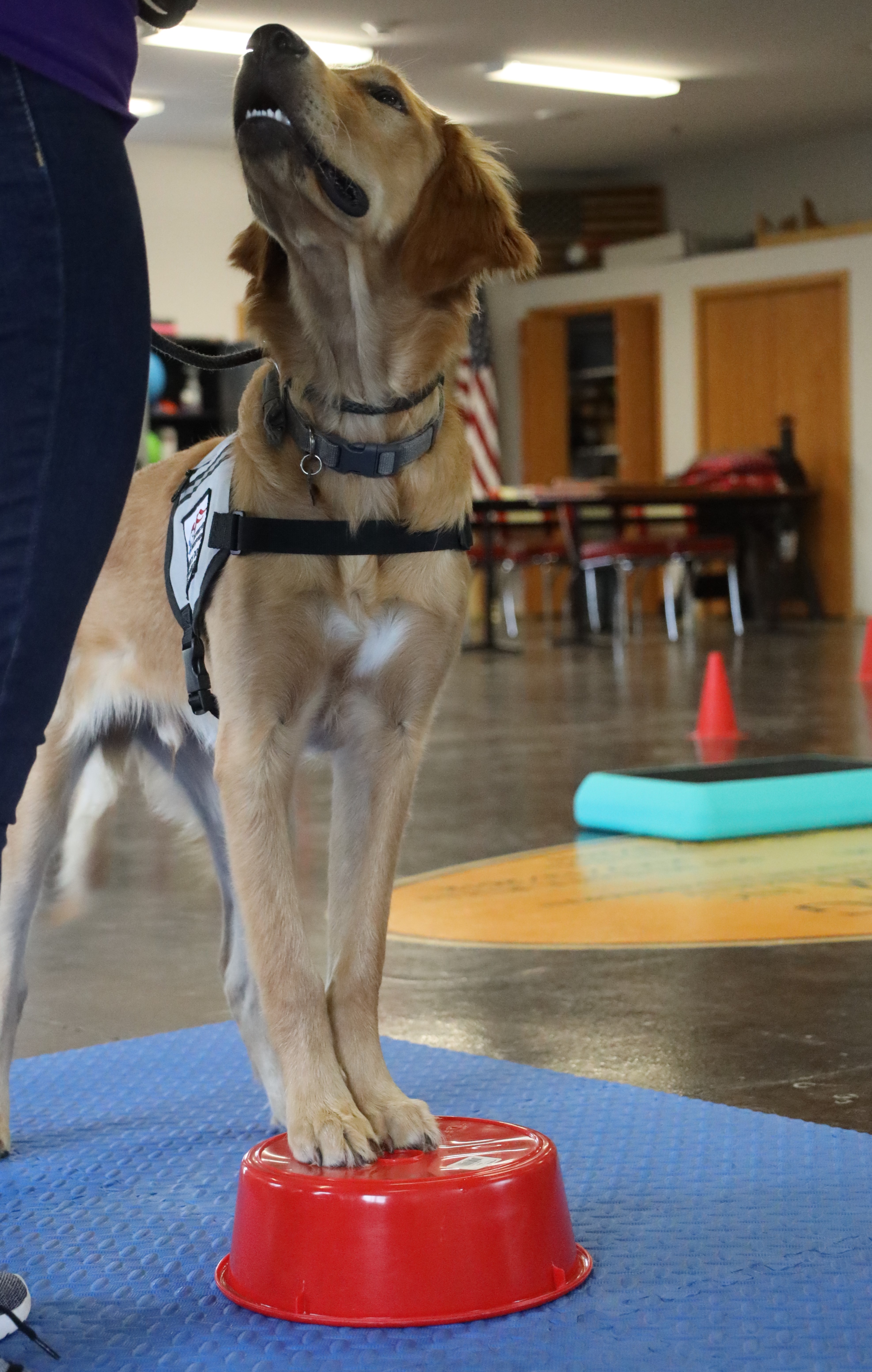 The mission of Retrieving Freedom is to change lives through the training and placement of service dogs for Veterans with disabilities and children with Autism. Each dog is trained to meet the needs of their specific recipient. Service dogs can aid Veterans with post-traumatic stress disorder (PTSD), traumatic brain injuries (TBI), and physical limitations. Oftentimes at RFI, we hear stories of Veterans not feeling comfortable in public. To assist with symptoms of PTSD, service dogs can perform positional commands, lining their body on certain sides of the veterans’ body, providing them with a buffer between themselves and strangers. If a Veteran struggles with nightmares, service dogs can turn on a light or wake the Veteran up in a calm manner. Service dogs are able to retrieve objects for Veterans with limited mobility, such as keys, wallet, phone, their leash, and more. They can push a handicap button to open a doorway for their recipient and tug doors closed behind them.