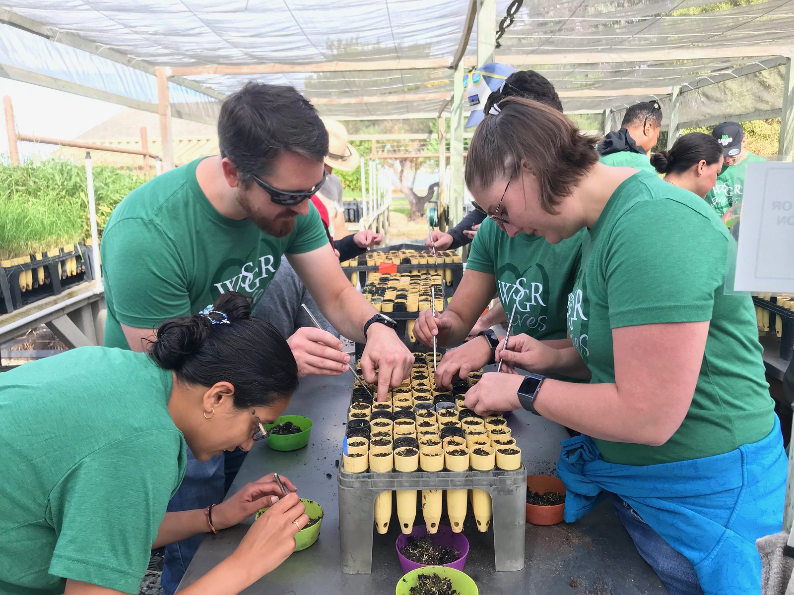 Save The Bay’s restoration program builds on more than 14 years of knowledge, our methods are science-based and adaptive. We specialize in transition zone habitat, the productive strip between tidal marsh and upland, a priority habitat that improves water quality by filtering toxic substances and capturing sediment. It provides refuge for endangered and threatened species during high tides and storms, provides food and nesting habitat for shorebirds and fish, and reduces levee erosion to enhance flood protection in the face of rising sea levels. Our restoration model has proven success in establishing greater native vegetation diversity, cover, and creek bank stabilization in the riparian and transition zones of tidal marshes and creek mouths. Our program provides quality civic engagement opportunities to local businesses and groups to give back to their community. Over 5,000 Save The Bay volunteers participate in all aspects of restoration, including: collecting native plant seeds, propagating plants in Save The Bay’s native plant nurseries, sowing plants along the shoreline, and removing invasive weeds and trash that degrade the Bay. We continue to invest in our volunteer base and improve the quality of volunteer experiences, which are consistently described as fun and meaningful. Many volunteers get involved through a community group, school, their place of work, or are seeking a rewarding opportunity for their friends and family. For many, the experience in the salt marshes opens their awareness to related critical environmental issues like storm drain pollution, fragile wildlife habitat, and climate change.